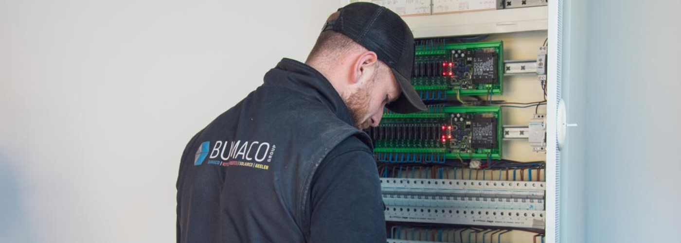 “Een woning van zonnepanelen voorzien, dat is meestal op één dag geklaard. ’s Ochtends starten we in het magazijn om ons materiaal te laden. Dan gaat Kaloyan het dak op en ik doe de elektrische installatie. ’s Avonds als we klaar zijn ruimen we op en gaan we nog even ons afval lossen op het recyclagepark van Bumaco Group”, vertelt Thure over zijn doorsnee dag.